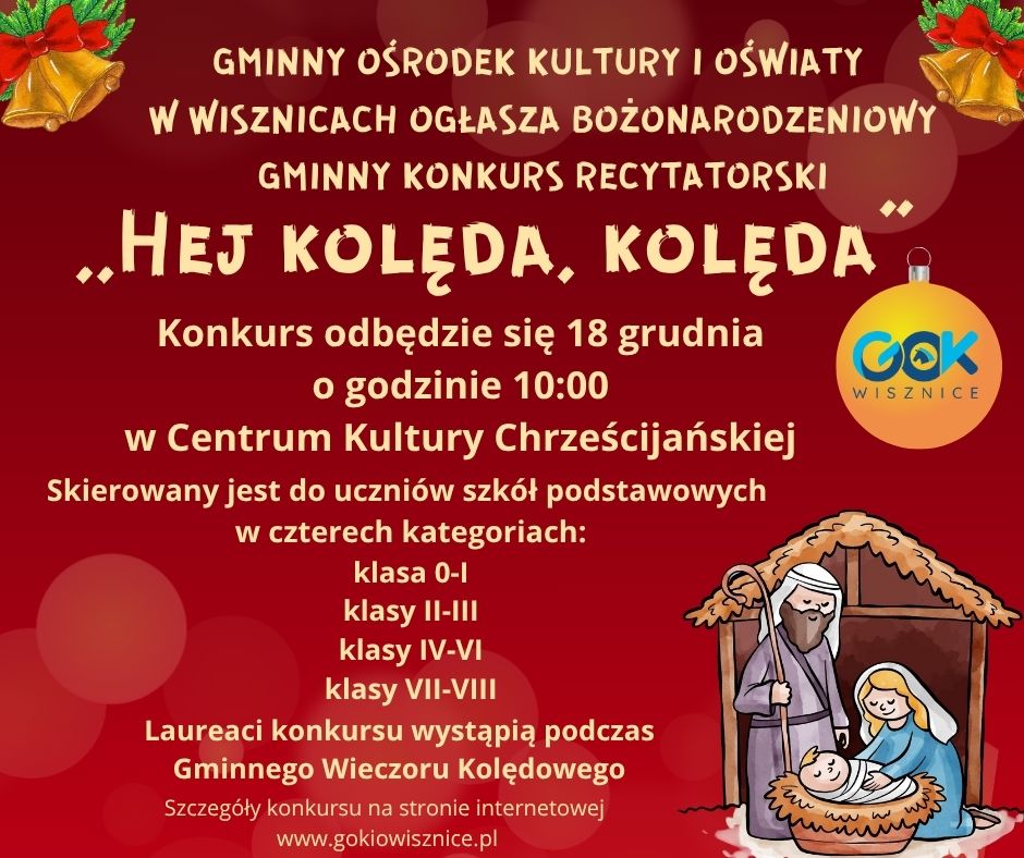 📜 18 grudnia – Gminny Konkurs Recytatorski „Hej, kolęda, kolęda!”